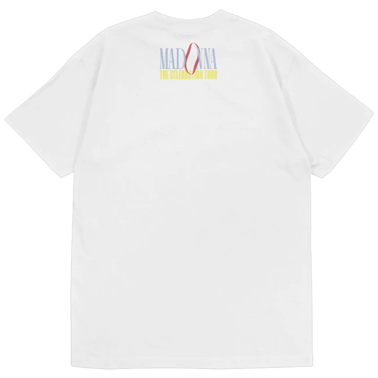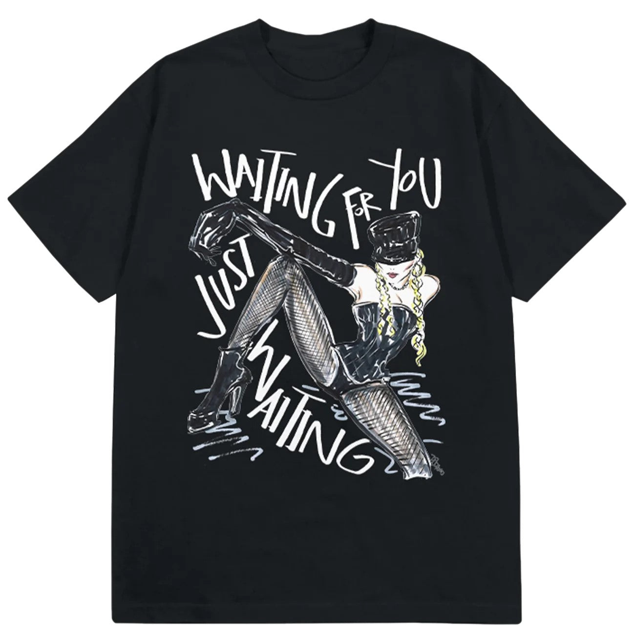 100% cotton short sleeve tee with "Waiting for You Just Waiting" sketch artwork on the front and Madonna Celebration Tour logo on the back